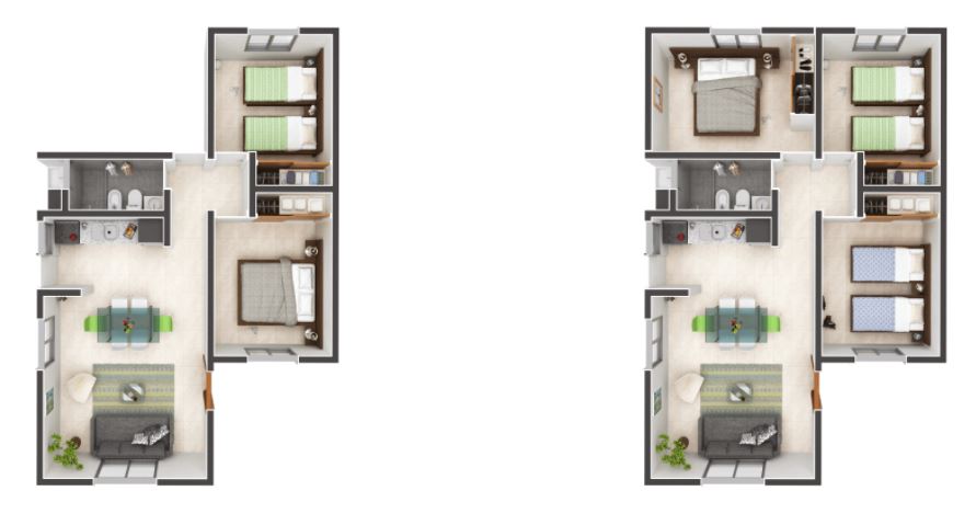 TIPOLOGÍA DE 2 Y 3 DORMITORIOS