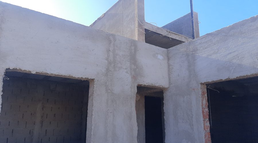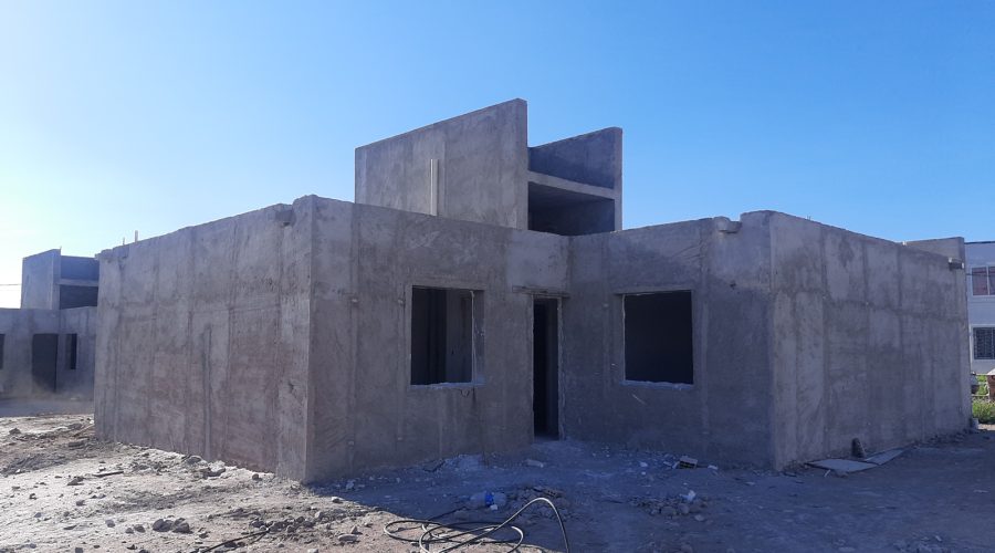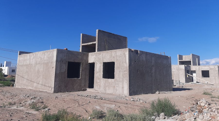 Progreso del mes: Durante este mes se registraron nuevos progresos en la obra. Continúan los trabajos de revoques y contrapisos, y se completaron las losas de cubiertas de las viviendas. Avanzan la ejecución de pozos pluviales y tareas de yesería en el interior de las unidades.