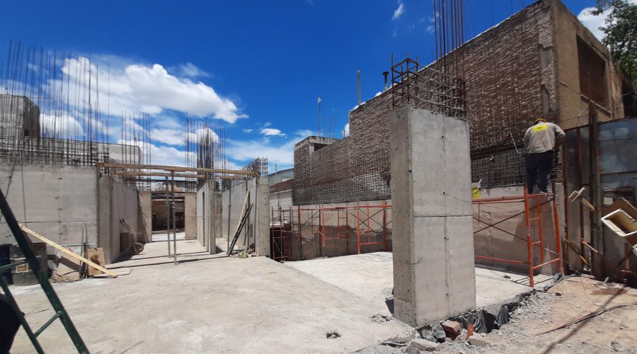 Progreso del mes: Se completaron los tabiques y losas de subsuelos, junto con los tabiques de Planta Baja, alcanzando el 100% de ejecución. Avanza la preparación de losas sobre PB y se finalizó el nexo de agua, sumando infraestructura clave al desarrollo.